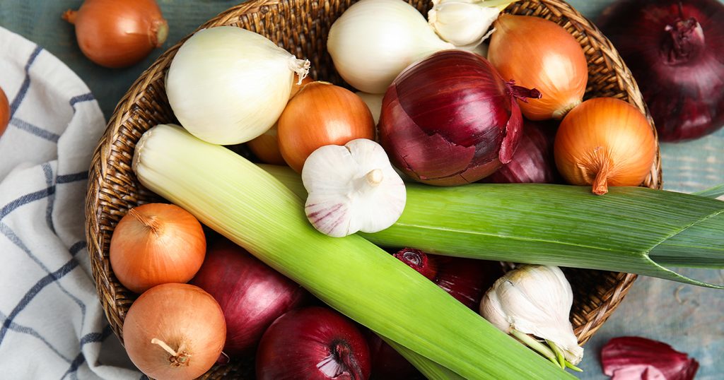 يحتوى كل من البصل والثوم مركبات الكبريت العضوىي المفيدة لخفض الكولسترول وضغط الدم والمساعدة في الوقاية من الأمراض المزمنة بما فى ذلك السرطان وأمراض القلب.