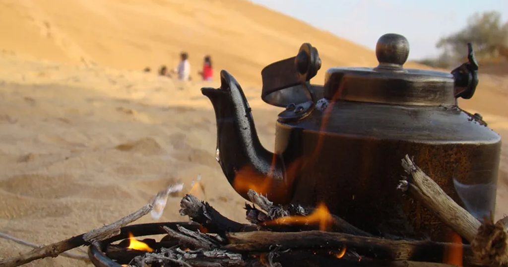 يمتك شاي الحطب أو شاي الجمر مكانة خاصة في قلوب السعوديين وخصوصًا في الأجواء الباردة، فهو صديقهم الصدوق في “كشتات” البر التي يزيد الإقبال عليها في فصل الشتاء، ويتواجد على أطراف الطرقات العديد من البسطات والسيارات التي تُعد هذا الشاي للمارة، ويشمل أيضًا شاي الكرك، وشاي الحبق المميز.