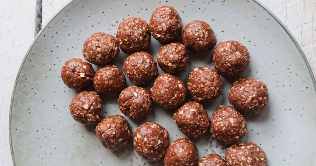 ان كنتم من محبي التمر وتبحثون عن وصفة حلى بثلاث مكونات فقط لا غير كل ما عليكم فعله هو نزع عجوة التمر ثم نقع حبات التمر بالماء الفاتر لحوالي 10 دقائق. نصفي التمر من الماء ثم نضعه في وعاء محضر الطعام مع الجوز. نطحن المكونات حتى تتداخل. نشكل الخليط إلى كرات ثم نغمسها بالقليل من جوز الهند.