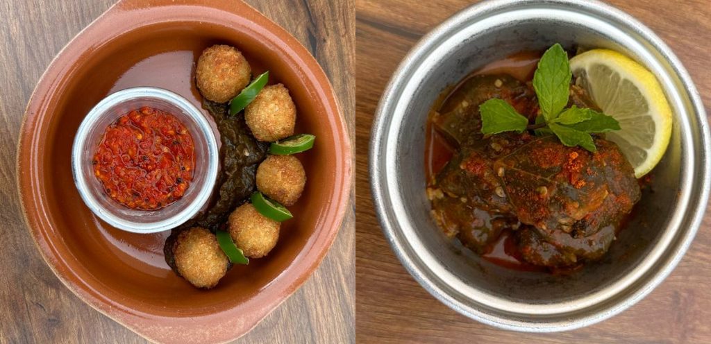 بطريقة تقديم جذابة مستوحاة من الشكل التقليدي للأطباق التراثية، تواجدت الكثير من الأطباق المنوّعة التي تناسب الأشخاص النباتين، و الأشخاص الذين يتبعون حمية بدون غلوتين، مع وجود أطباق اللحم والدجاج والسمك.