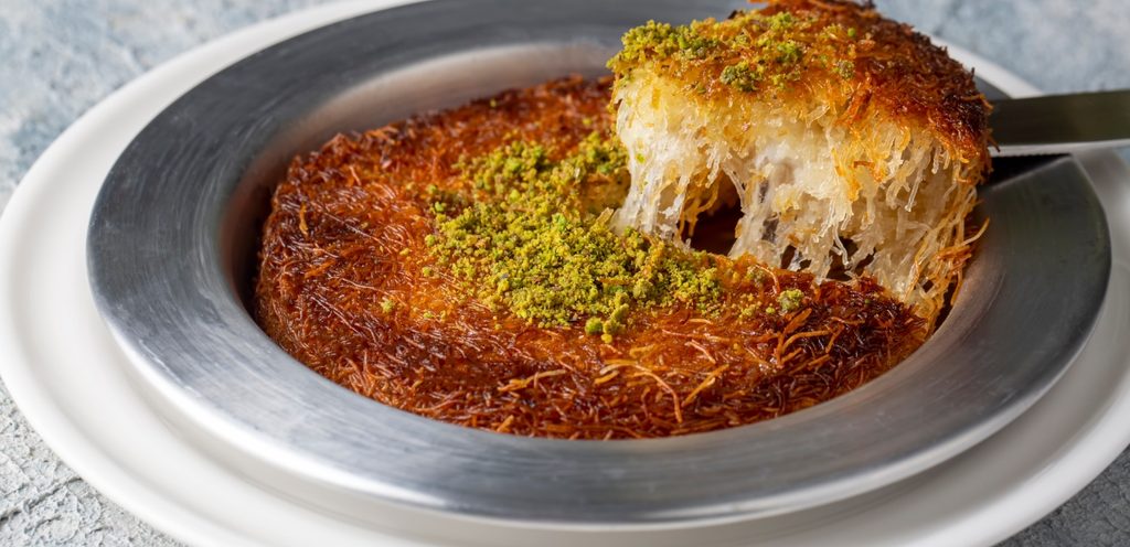تُعد الكنافة واحدة من أشهر الحلويات في الأردن والعالم العربي. وتتكون الكنافة من شعيرية رقيقة تُحشى بالجوز والمكسرات، ثم تُخبز وتُشرب بالقطر. تعتبر الكنافة من الحلويات المفضلة التي تُقدم في المناسبات والاحتفالات، وتُعزز بطعمها الحلو واللذيذ الذي يجذب محبي الحلويات.