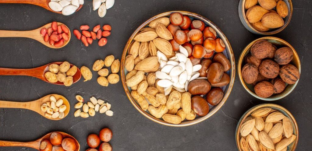 بالتأكيد تعتبر بعض أنواع المكسرات عالية بالسعرات الحرارية مما يحتم عليكم الإقتصاد في تناولها وعدم الإفراط لكونها قد تسبب لكم زيادة في الوزن، ومن أكثر المكسرات الملائمة للحمية: الفول السوداني، والبندق غير المملح، الجوز أو “عين الجمل”، واللوز النيء.